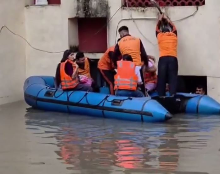 25th August: जम्मू कश्मीर के कई हिस्सों में भारी बारिश के बाद, कई निचले इलाकों में जलभराव हो गया, जिससे लोगों को स्थानांतरित करना पड़ा।जम्मू स्थित सीएसआईआर आईआईआईएम परिसर के छात्रावास में भारी जलभराव के बाद कम से कम 90 छात्रों को सुरक्षित स्थान पर पहुंचाया गया।एसडीआरएफ के एक अधिकारी ने बताया, “हमें सुबह करीब 10:30 बजे एक कॉल आया और हमने तुरंत एसडीआरएफ की टीम को तैनात किया और छात्रावास के 90 छात्रों को बचाया। अब सभी सुरक्षित हैं। छात्रों को बचाने में हमें करीब 2 घंटे लगे।”25th August