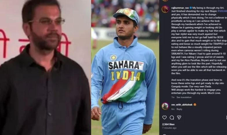 अभिनेता ने कहा कि अब वो अतिरिक्त वजन कम करने और अपनी अगली बायोपिक के लिए फिर से वजन में बदलाव कर रहे हैं। राव की अगली बायोपिक पूर्व भारतीय कप्तान सौरभ गांगुली से प्रेरित है, जिन्हें लोग प्यार से “दादा” कहते हैं।राजकुमार राव ने आगे कहा कि वो अपनी कला के माध्यम से दर्शकों को “जोड़ने और मनोरंजन करने” के लिए कड़ी मेहनत करने के लिए प्रतिबद्ध हैं।राजकुमार की हालिया फिल्मों में “भूल चूक माफ” और “मालिक” शामिल हैं। Bollywood: