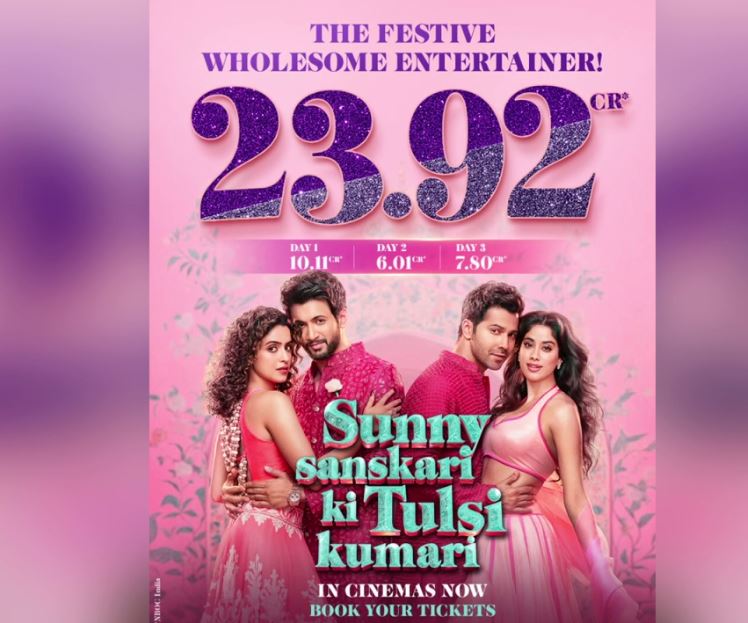 सनी संस्कारी की तुलसी कुमारी” में सान्या मल्होत्रा और रोहित सराफ भी हैं।निर्माताओं ने सोशल मीडिया पर बॉक्स ऑफिस के आंकड़े साझा किए। पोस्ट में फिल्म का पोस्टर और हर दिन की कमाई का कलेक्शन सांझा किया गया है।फिल्म ने 10.11 करोड़ रुपये से शुरुआत की और शुक्रवार को घरेलू बॉक्स ऑफिस पर 6.01 करोड़ रुपये और शनिवार को 7.80 करोड़ रुपये की कमाई की। फिल्म का कुल कलेक्शन 23.92 करोड़ रुपये हो गया है।Bollywood