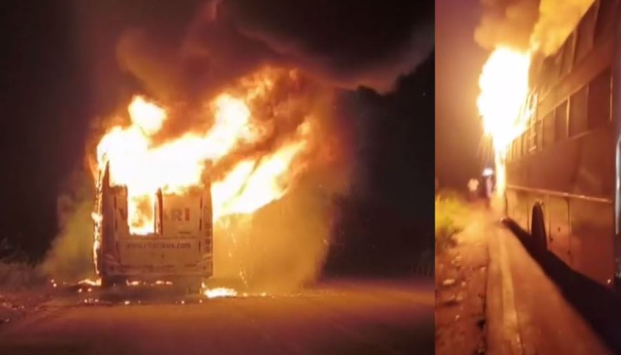 बस हैदराबाद से आंध्र प्रदेश के कंदुकुर जा रही थी। बस चालक ने इंजन से धुआं निकलता देखकर तुरंत वाहन रोक दिया और यात्रियों को उतरने को कहा।नलगोंडा जिले के पुलिस अधीक्षक (एसपी) शरत चंद्र पवार ने ‘पीटीआई-वीडियो’ को बताया कि यात्रियों के बस से नीचे उतरने के कुछ ही देर बाद बस आग की लपटों में घिर गई। Bus Fire: