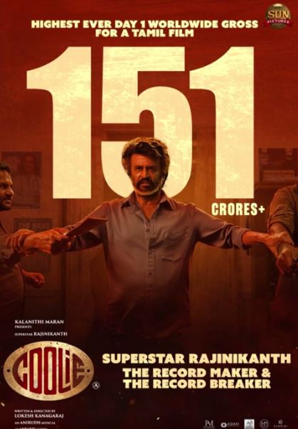 पोस्ट के कैप्शन में लिखा था, “#Coolie ने 151 करोड़+ के साथ तमिल फिल्म के लिए अब तक का सबसे बड़ा पहले दिन का वर्ल्डवाइड ग्रॉस दर्ज किया। #Coolie दुनियाभर के सिनेमाघरों में।”फिल्म में रजनीकांत एक कुली के किरदार में हैं, जो एक बंदरगाह में अपने पूर्व साथियों का शोषण और उत्पीड़न करने वाले भ्रष्ट सिंडिकेट के खिलाफ खड़ा होता है।Coolie: