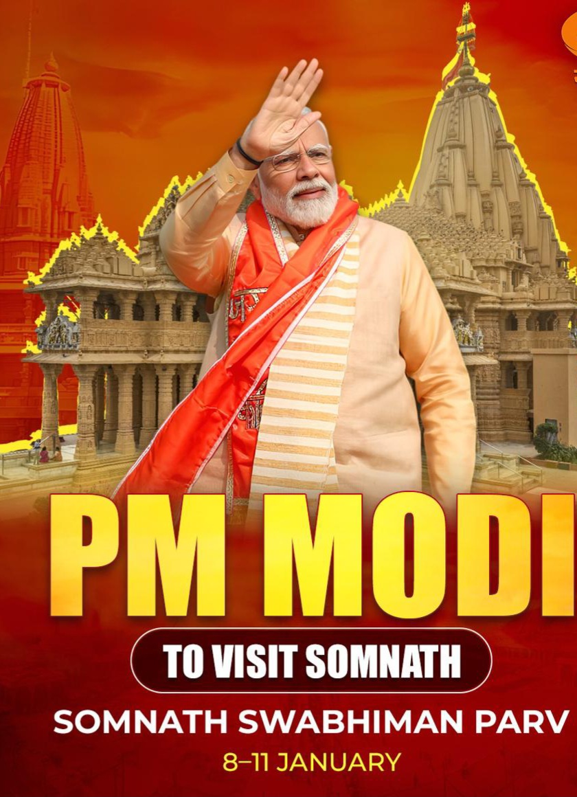 Gujarat: प्रधानमंत्री मोदी 11 जनवरी को इस चार दिवसीय उत्सव के समापन कार्यक्रम में शामिल होंगे। अधिकारियों के मुताबिक, इस पर्व के माध्यम से न केवल आध्यात्मिक बल्कि सांस्कृतिक और सामाजिक गतिविधियों की एक बड़ी श्रृंखला शुरू की जाएगी। यह कार्यक्रम सोमनाथ के गौरवशाली इतिहास और आधुनिक भारत के उसके महत्व को दर्शाने के लिए डिजाइन किया गया है।पीएम मोदी ने इस अवसर पर एक विशेष लेख भी लिखा है।
