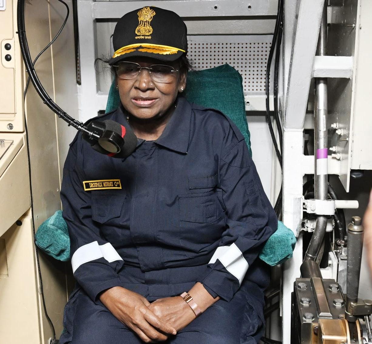 राष्ट्रपति मुर्मू, पूर्व राष्ट्रपति डॉ. एपीजे अब्दुल कलाम के बाद पनडुब्बी में यात्रा करने वाली देश की दूसरी राष्ट्रपति बन गई हैं। यह पहली बार है जब किसी राष्ट्रपति ने स्वदेशी कलवरी श्रेणी की पनडुब्बी पर सैन्य परिचालन स्थितियों का अनुभव किया है।यात्रा के बाद भावुक और गौरवान्वित राष्ट्रपति ने चालक दल की प्रशंसा करते हुए कहा कि-”आईएनएस वाघशीर के चालक दल के अनुशासन, आत्मविश्वास और उत्साह को देखकर मुझे यह पूर्ण विश्वास हो गया है कि हमारी पनडुब्बियां और भारतीय नौसेना किसी भी खतरे का सामना करने और हर परिस्थिति में युद्ध के लिए पूरी तरह तैयार हैं।“INS: