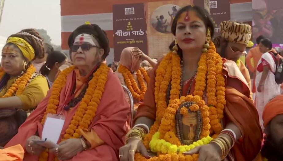 Kolkata: पश्चिम बंगाल और पड़ोसी राज्यों से साधुओं और साध्वियों समेत लाखों श्रद्धालुओं ने कोलकाता के प्रतिष्ठित ब्रिगेड परेड ग्राउंड में आयोजित विशाल भगवद् गीता पाठ में हिस्सा लिया। भगवा वस्त्र पहने साधुओं ने कार्यक्रम की जगह पर गीता से एक स्वर में श्लोक पढ़े। Kolkata: