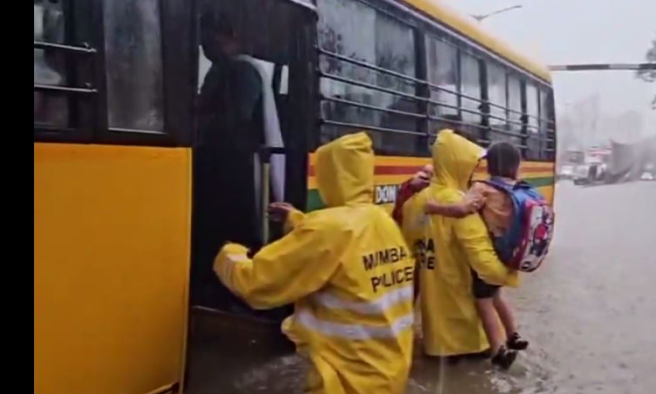 मुंबई पुलिस ने दिखाई दरियादिली, स्कूल बस में फंसे बच्चों को किया रेस्क्यू