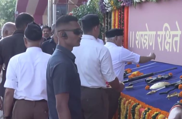 Maharashtra: राष्ट्रीय स्वयंसेवक संघ (आरएसएस) के प्रमुख मोहन भागवत ने गुरुवार को नागपुर में संगठन द्वारा आयोजित ‘विजयादशमी उत्सव’ के अवसर पर ‘शस्त्र पूजा’ की।आरएसएस मुख्यालय के रेशमबाग मैदान में शस्त्र पूजा के दौरान पारंपरिक हथियारों के अलावा ‘पिनाक एमके-1’, ‘पिनाक एन्हांस’ और ‘पिनाक’ सहित आधुनिक हथियारों की प्रतिकृतियां और ड्रोन प्रदर्शित किए गए।इस साल […]