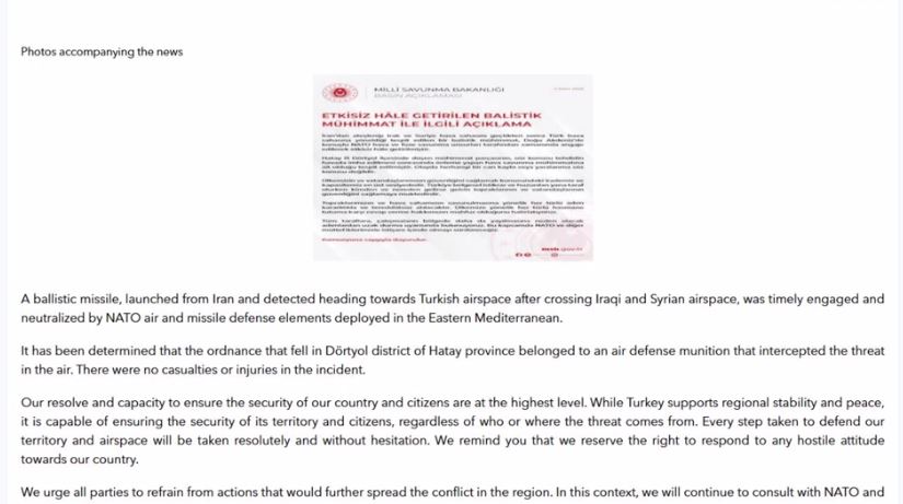 TURKEY: तुर्किये के अधिकारियों ने बुधवार 4 मार्च को बताया कि ईरान से इराक और सीरिया होते हुए तुर्किये के हवाई क्षेत्र की ओर आ रही एक बैलिस्टिक मिसाइल को नाटो की हवाई रक्षा प्रणालियों ने तबाह कर दिया। रक्षा मंत्रालय ने कहा कि पूर्वी भूमध्य सागर में तैनात नाटो की हवाई और मिसाइल रक्षा प्रणालियों ने इसे निशाना बनाकर निष्क्रिय कर दिया।